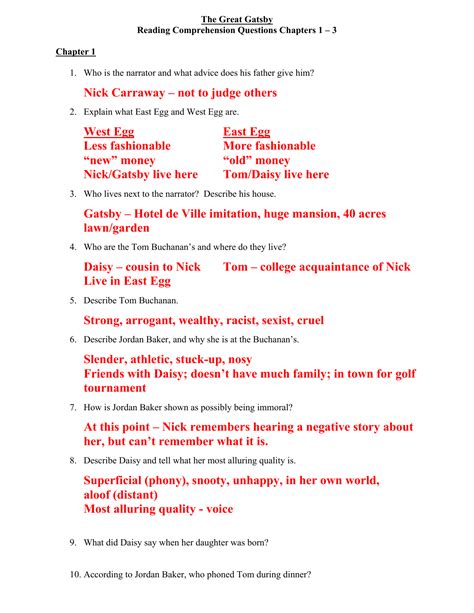 Read Online Great Gatsby Study Guide Answers Chapter 3 Epub